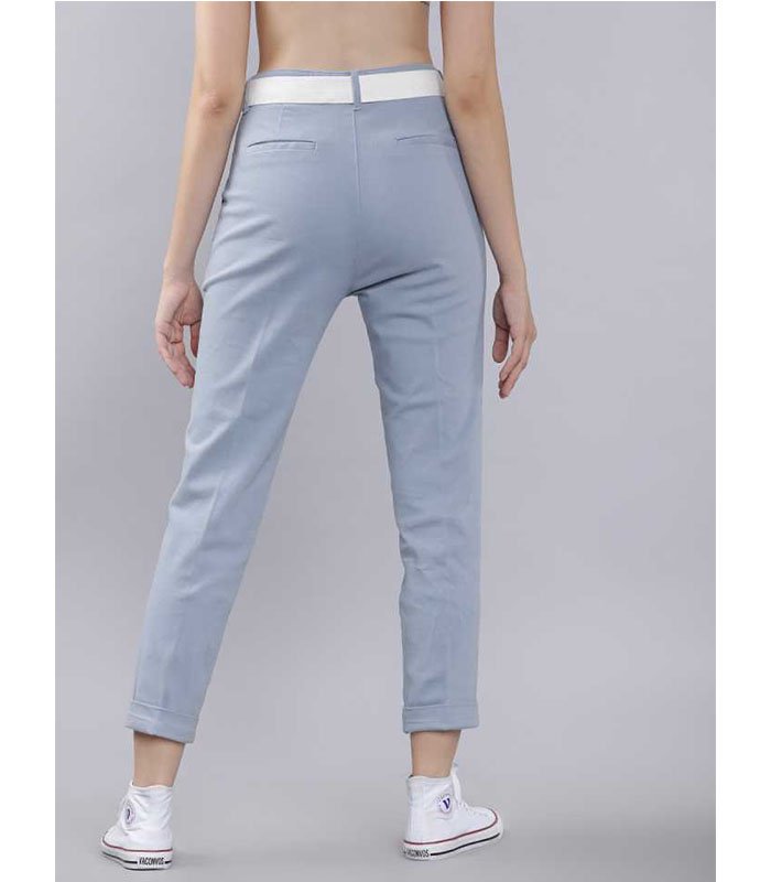 Regular Fit Women Blue Cotton Lycra Blend Trousers